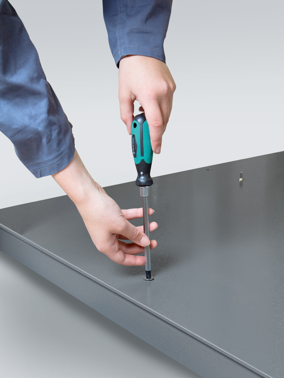 - Wägeplatte : glatte Oberfläche, von oben verschraubt, dadurch leicht abzunehmen und hygienisch und gut zu reinigen
