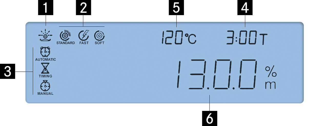 - Waageninterner Speicher für den automatischen Ablauf von 15 Trocknungsprogrammen und 5 durchgeführten Trocknungsprozessen