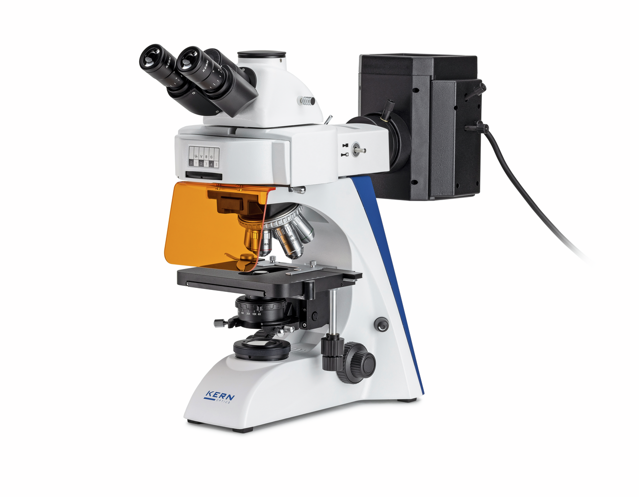 KERN Fluoreszenzmikroskop OBN 148, Trinokular, 4 x / 10 x / 20 x / 40 x / 100 x, 20W Halogen (Auflicht