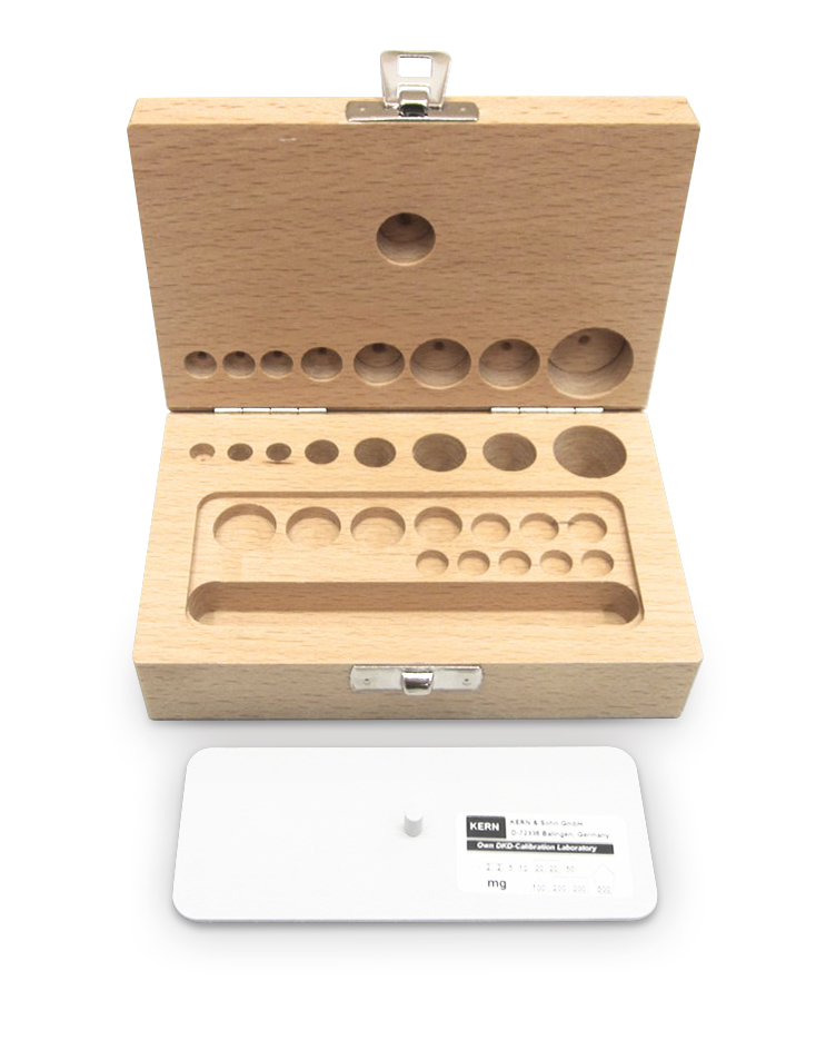 KERN Holz-Gewichtsetui 353-420-200, für Nennwerte 1 mg – 50 g, für Klassen F2 + M1 + M2, für Bauform Knopf/Kompakt