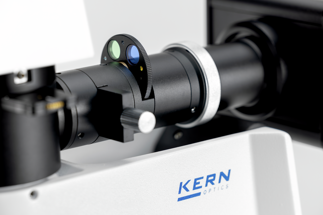 - Die Beleuchtungseinheit mit einem integrierten 5-fach-Filterrad für blau, grün, gelb, grau und leer ermöglicht ein schnelles Wechseln der Farbfilter für unterschiedliche Kontrastansichten