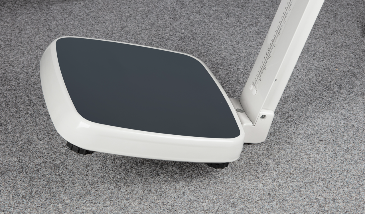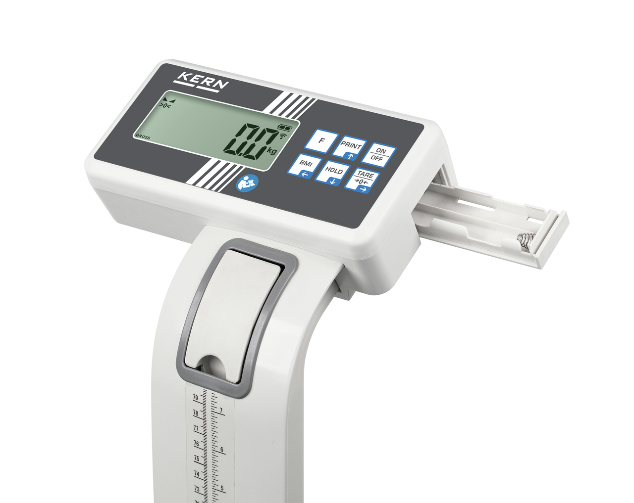 - Hold-Funktion: Bei unruhig stehenden Patienten wird über Mittelwertbildung ein stabiler Wägewert ermittelt und „eingefroren“. So bleibt genügend Zeit, sich dem Patienten zu widmen und anschließend in Ruhe den Wägewert abzulesen