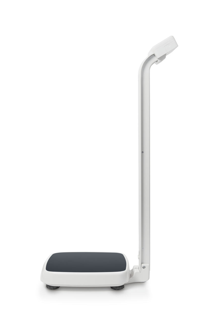 - Hold-Funktion: Bei unruhig stehenden Patienten wird über Mittelwertbildung ein stabiler Wägewert ermittelt und „eingefroren“. So bleibt genügend Zeit, sich dem Patienten zu widmen und anschließend in Ruhe den Wägewert abzulesen