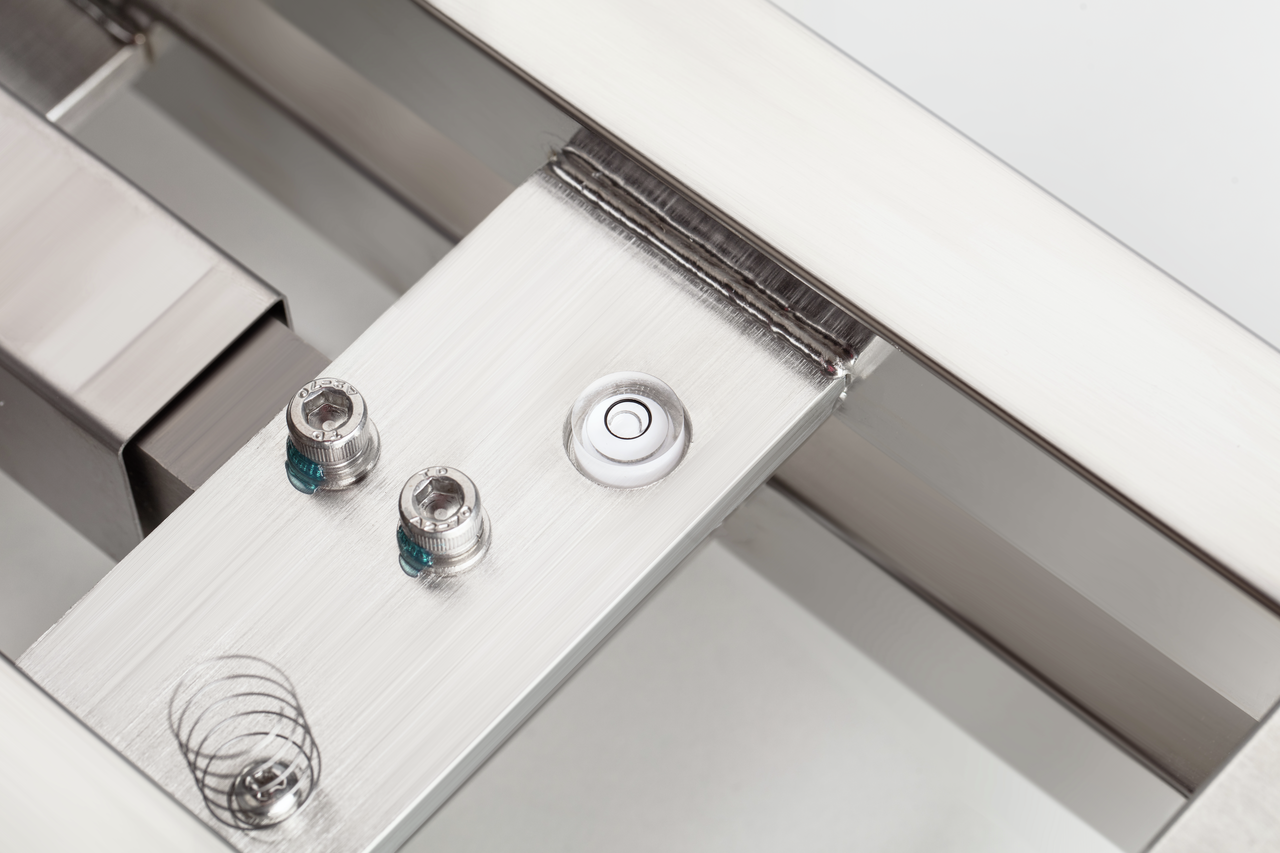 - Libelle und Fußschrauben zum exakten Nivellieren der Waage serienmäßig, dadurch genaueste Wägeergebnisse