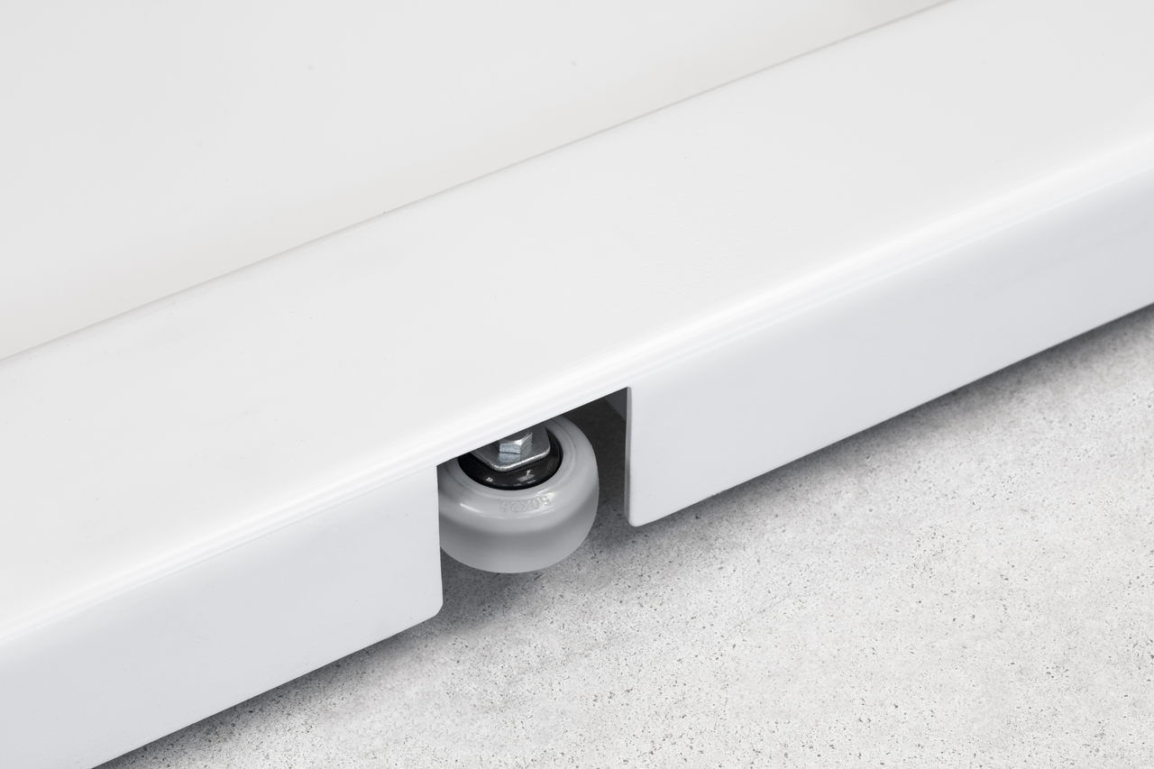 - Waage kann mittels zwei Rollen und zwei Handgriffen bequem transportiert und platzsparend verstaut werden