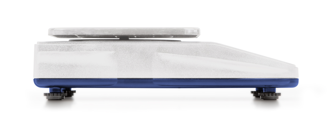 - Libelle und Fußschrauben zum exakten Nivellieren der Waage serienmäßig, dadurch genaueste Wägeergebnisse