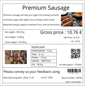 - PrePack Production: Diese Funktion unterstützt alle Fertigverpackungsvorgänge, in denen die Produkte, statt mit einer festen Nennfüllmenge, mit individuellen Gewichten und Preisen ausgezeichnet werden sollen. PrePack Production erlaubt es, anspruchsvoll gestaltete Labels hocheffizient zu erstellen und zu drucken, einschließlich Bildern, Barcodes und individuellen Gewichts- und Preisdaten