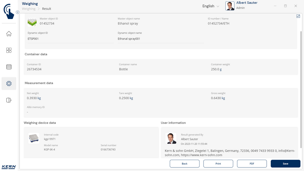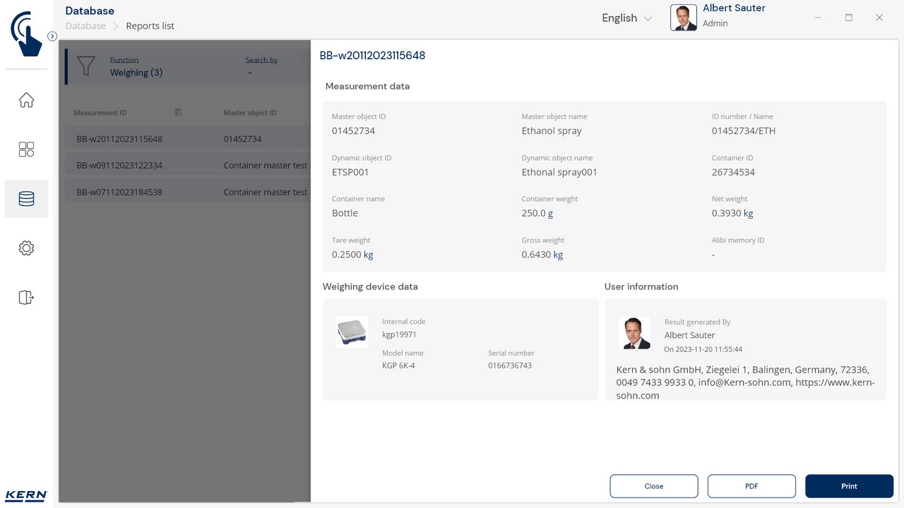 KERN Software KERN EasyTouch SET-18 Container Master