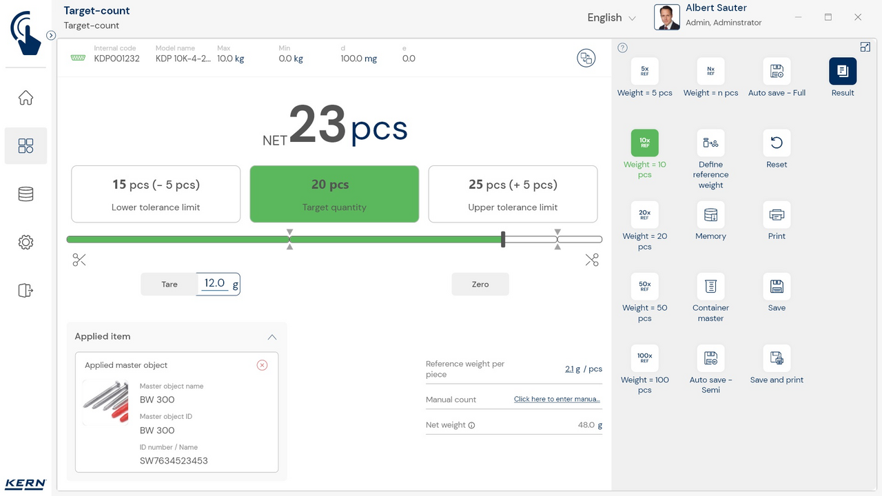 - Genaues Zählen: Die automatische Referenzoptimierung verbessert stufenweise den Durchschnittswert des Teilegewichts