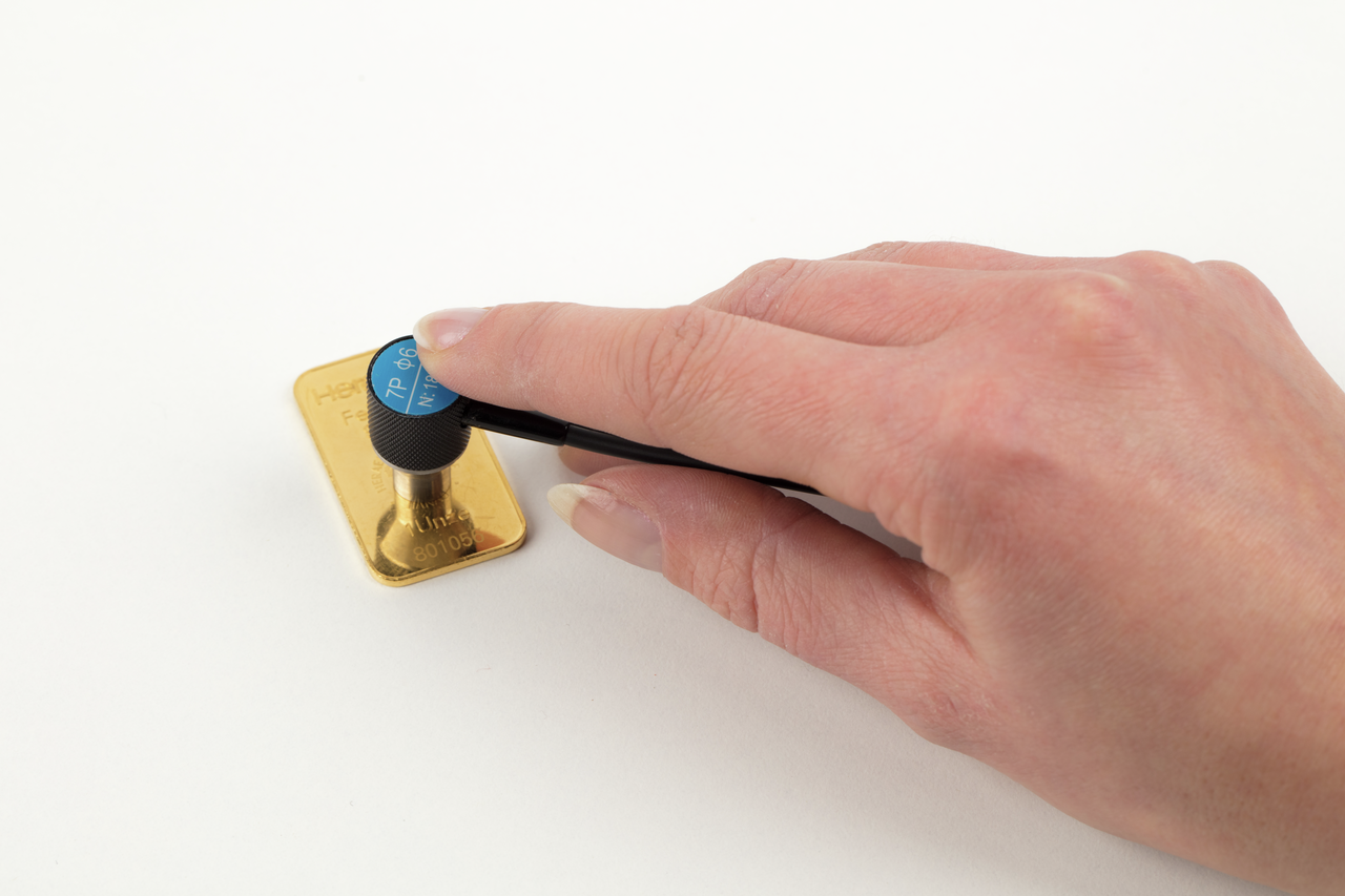- Das Instrument misst die Dicke von Goldbarren oder Goldmünzen per Ultraschall
