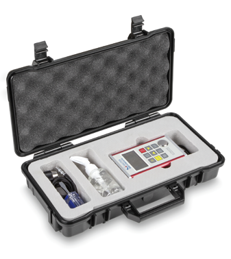 - Lieferumfang: Betriebsanleitung, Batterien, externer Messkopf (∅ 6 mm) und Ultraschall-Kontaktgel